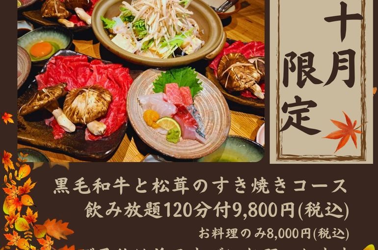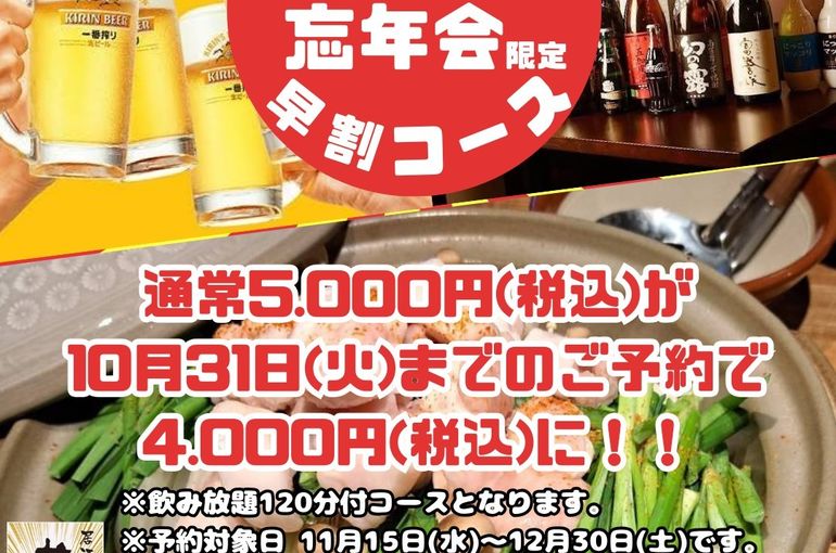 忘年会特別コースを10月中にご予約いただいたお客様限定で、人数×1000円引き。